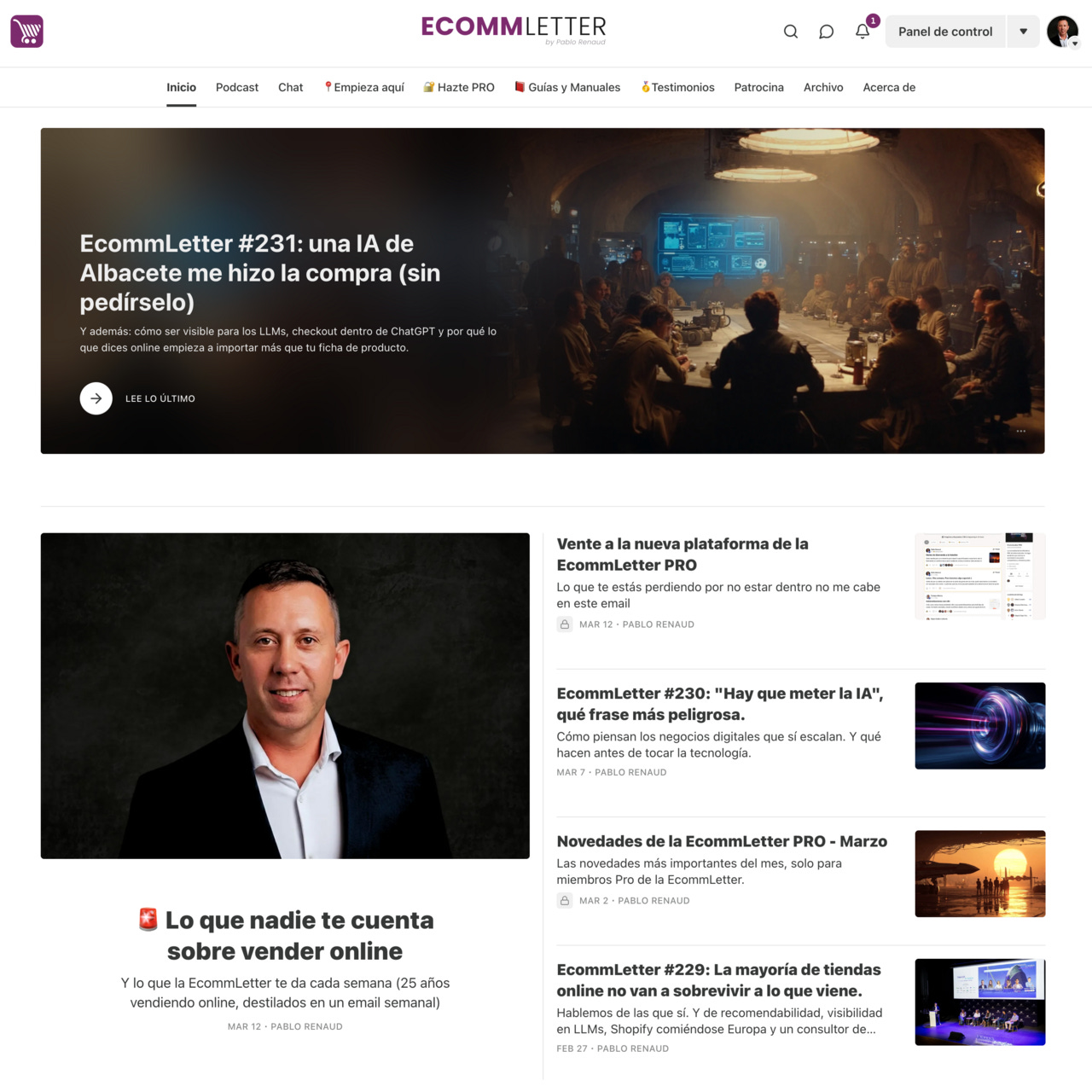 “Pablo sabe mucho de Ecommerce y de contar historias. Y esto es lo que encontrarás semanalmente en su newsletter.”...”