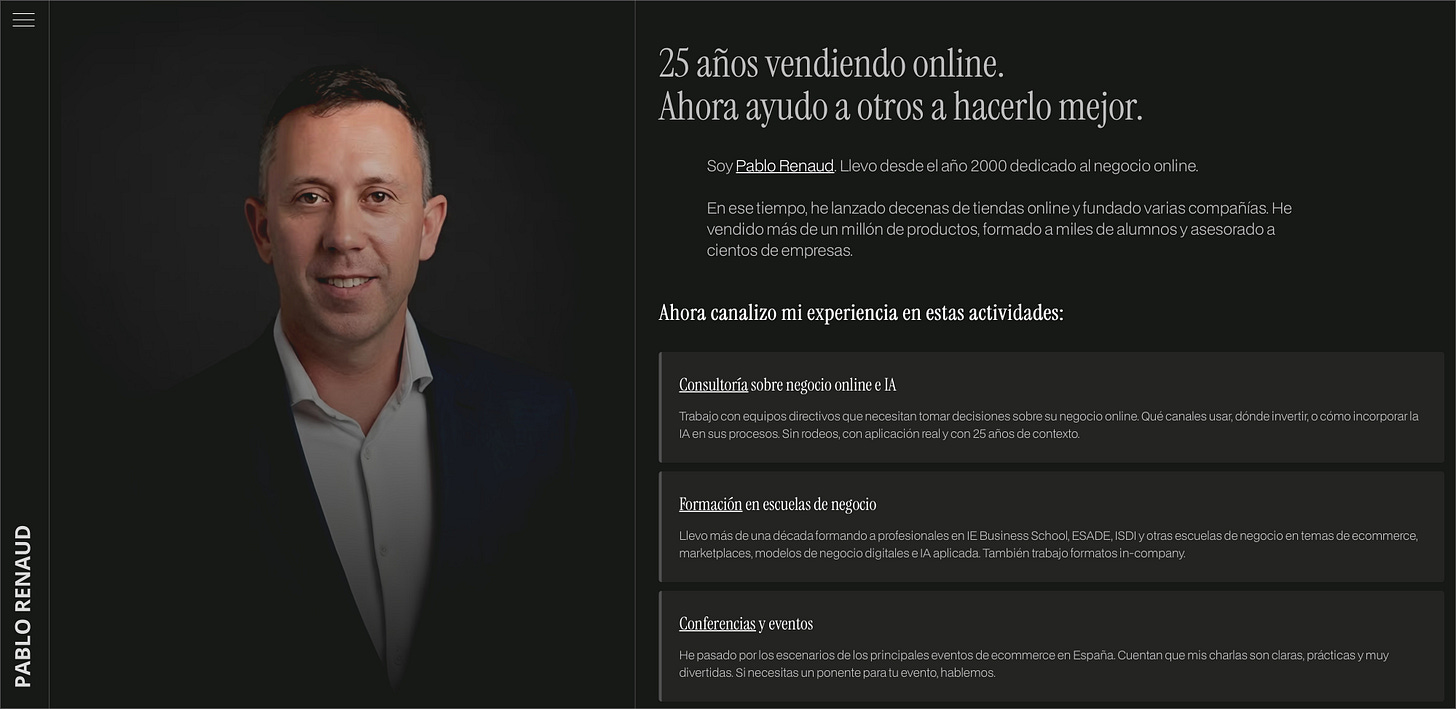 Me volqué en esto de vender online y desde entonces no he parado. He fundado empresas, las he escalado, he quebrado alguna de forma espectacular, y he vendido otras. Siempre con mi propio dinero en juego. Siempre con piel en la partida (lo de “skin in the game” en inglés suena mucho mejor).