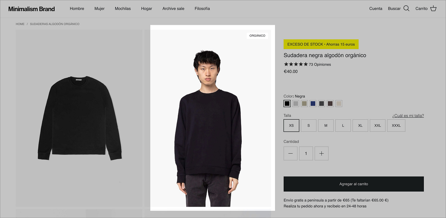 Empiezo con esta foto de catálogo. El producto está bien, pero el modelo parece que acaba de recibir la factura de la luz. Ya sé que en moda hay códigos sobre si los modelos deben sonreír o no, pero hombre, un poco de alegría no vendría mal.