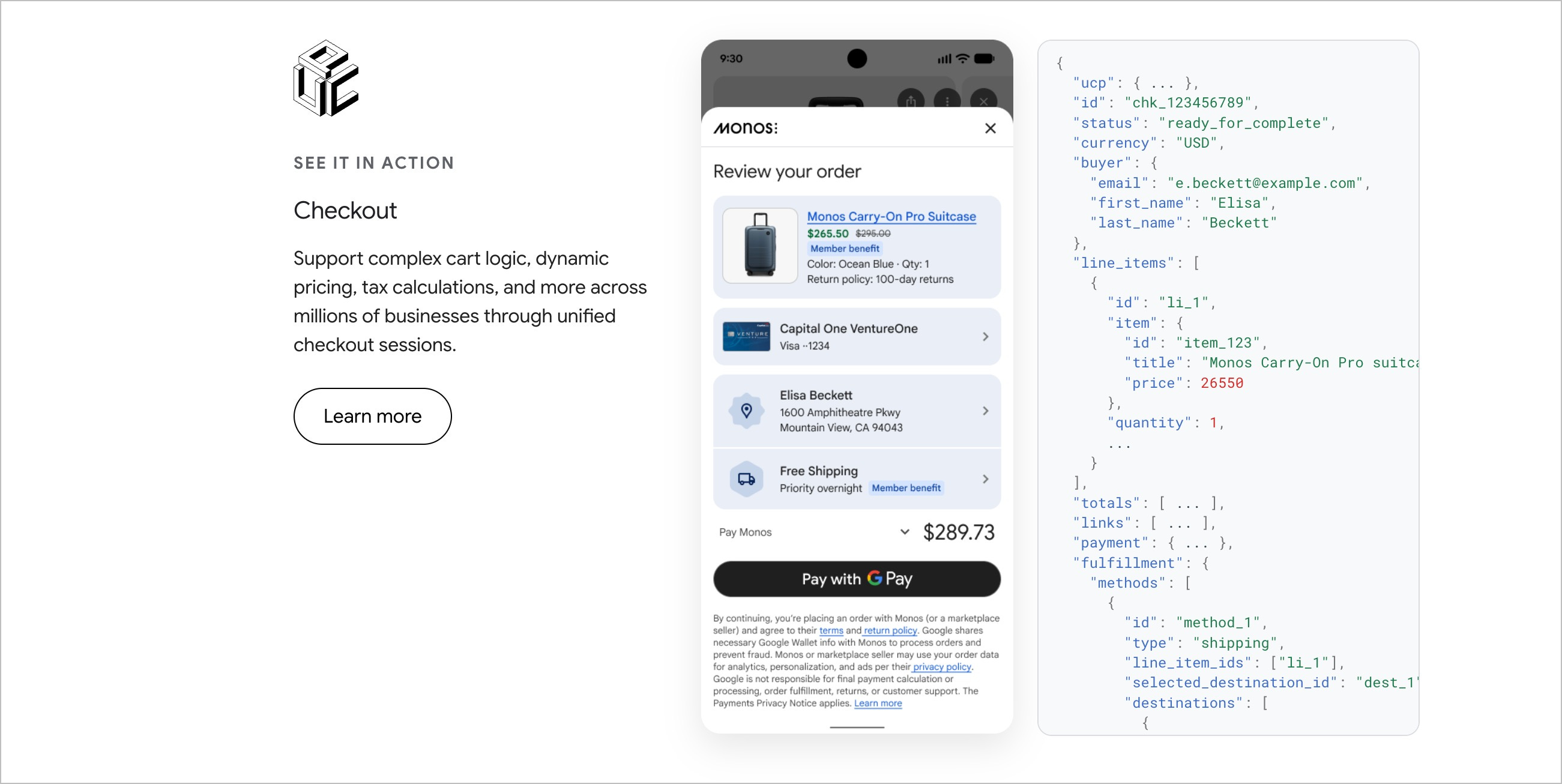UCP es un estándar abierto y open-source que permite a los agentes de IA (Gemini, el AI Mode de Google Search, y en general cualquier asistente conversacional) conectarse con sistemas de comercio electrónico. Catálogo, precios, inventario, checkout, pedidos, postventa. Todo el ciclo.