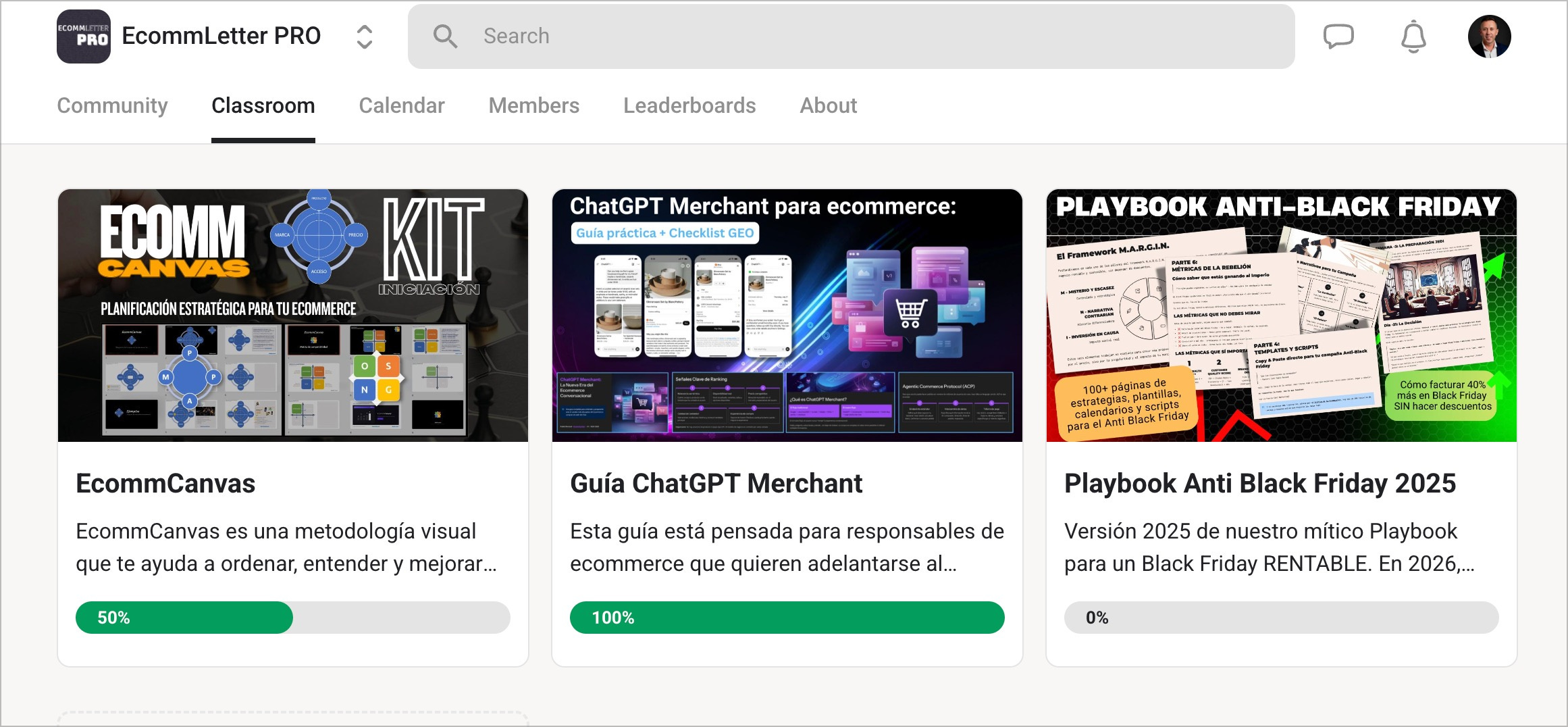 ▶︎ La biblioteca de cursos y documentos, con los Manuales de Batalla, las guías de ecommerce que tanto os gustan, y documentos exclusivos que no publico en ningún otro sitio.