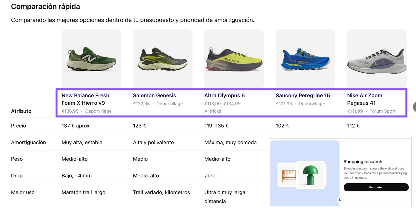 Le dices a ChatGPT “busco las mejores zapatillas para correr mi primera maratón con menos de 150€”
