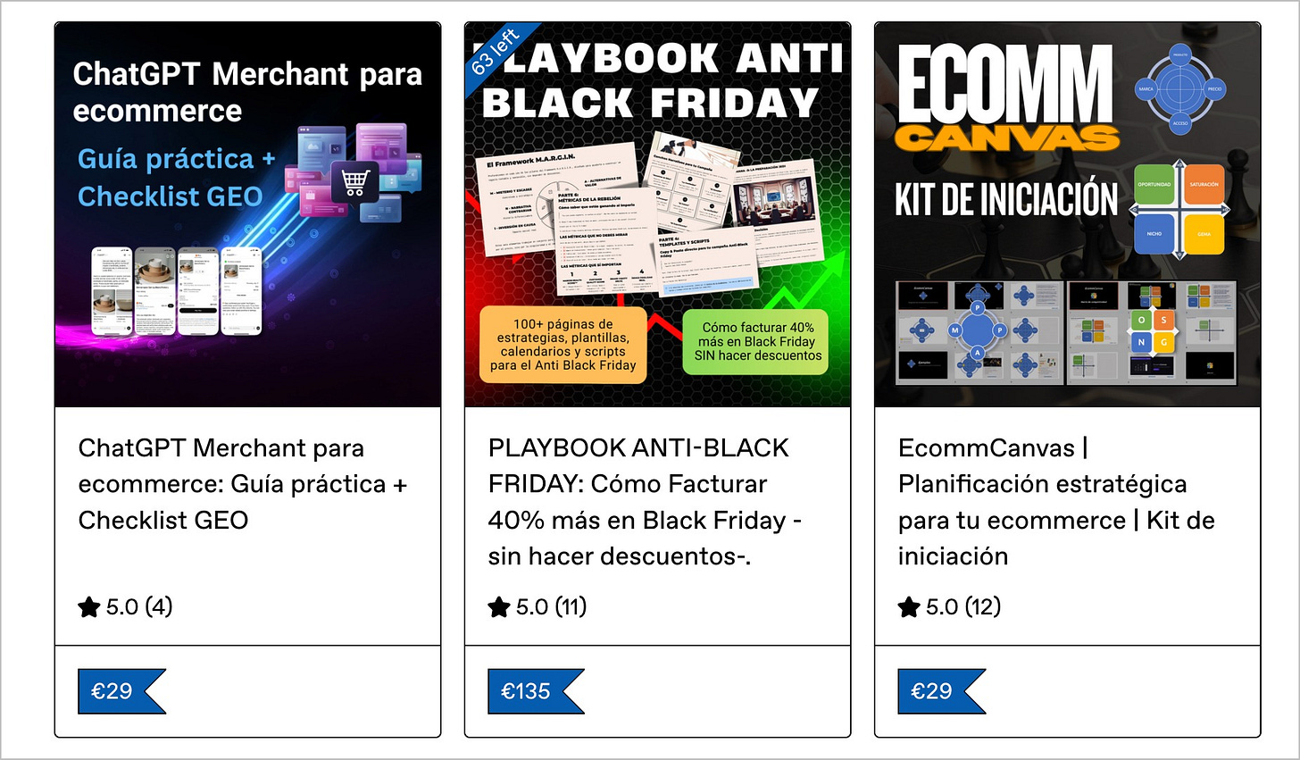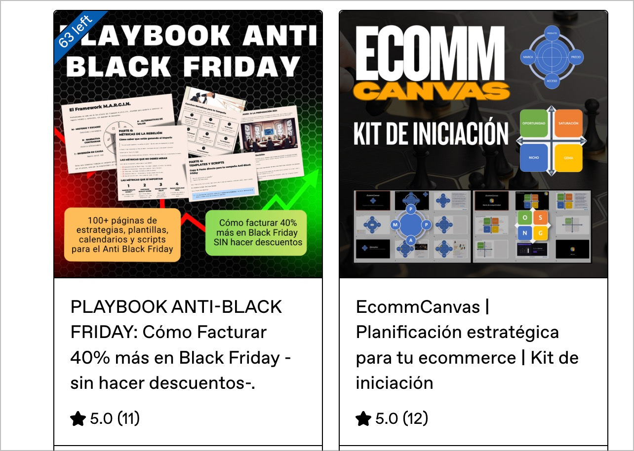 Mira los contenidos y metodologías sobre ecommerce que publico. Suelo ofrecerlos gratis y en primicia a los miembros PRO, para que los disfruten antes que nadie y me den feedback.