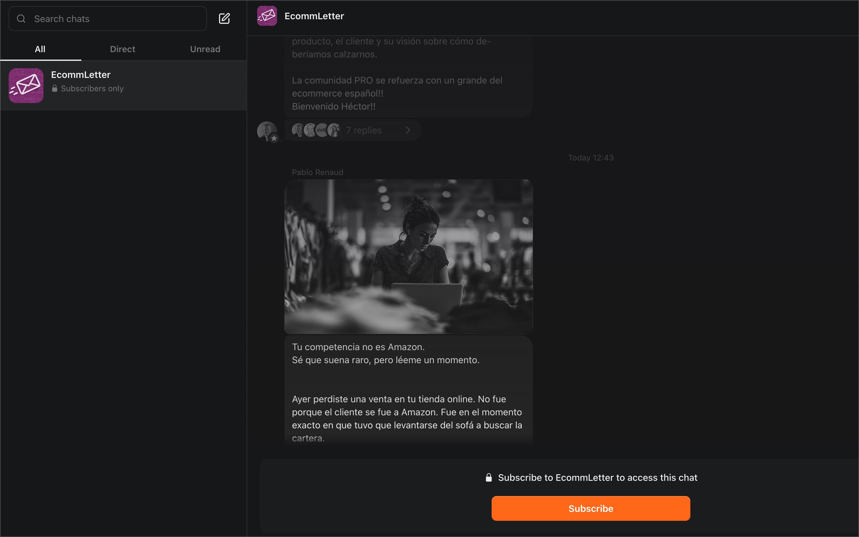 Y, sobre todo, un lugar donde aprender de errores y aciertos, en conversaciones que no verás en público. Nuestros miembros nos comparten sus mayores aprendizajes en privado, dentro de la comunidad.Todo esto ocurre en la EcommLetter PRO.