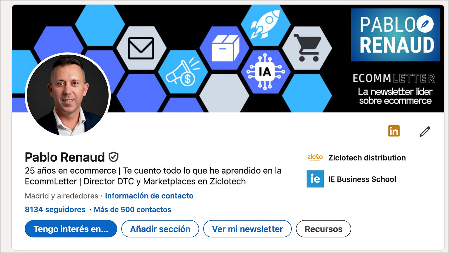 Redes sociales propias: 8134 seguidores en LinkedIn, donde semanalmente se comparten también las ediciones de la EcommLetter