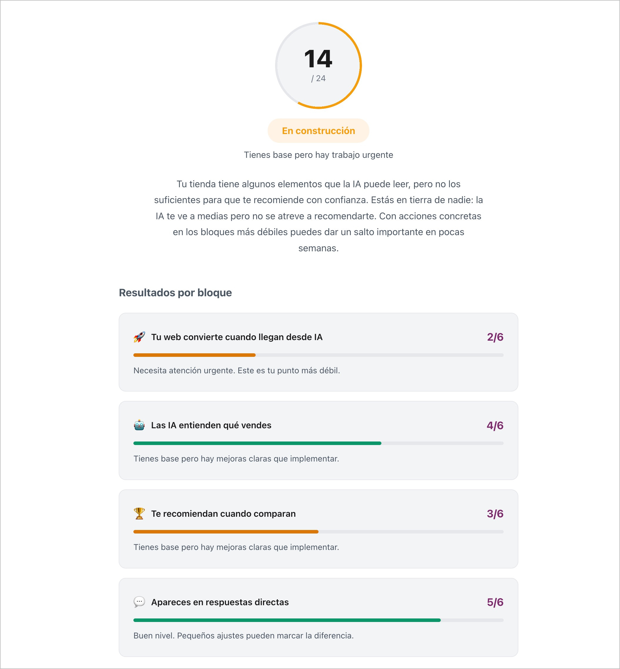 He construido una aplicación web que analiza 4 bloques de tu ecommerce y te da un diagnóstico en 3 minutos: